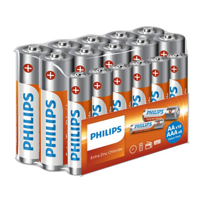 Philips Extra Chloride(Longlife) AA x10 + AAA x6 foil pack